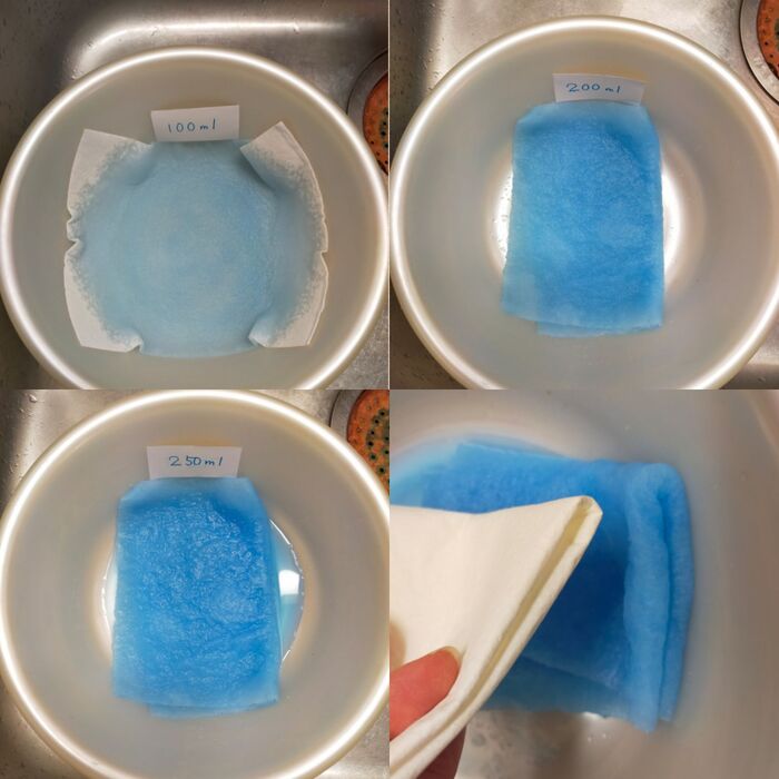 もしもの時に、吸水量がわからないのは不安なので、実際に試してみました。
