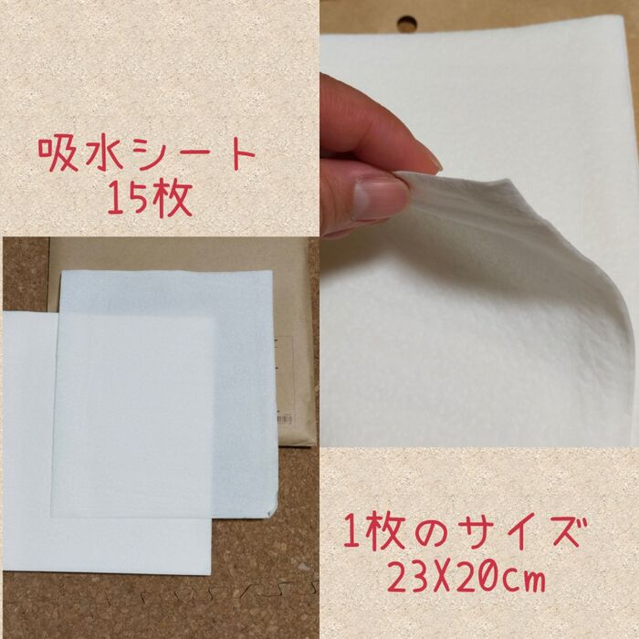 他メーカーの粉末タイプには、一回で500㏄を吸収できるタイプもありますが、シートの枚数で調整する方が私には使いやすいと感じています。