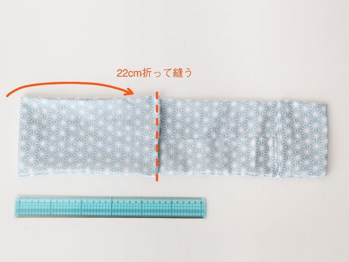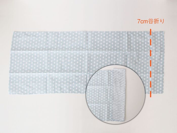 広げたら右側7cm(人差し指くらいの長さ)を谷折りします。