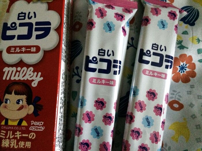 箱に、「ミルキーの練乳使用」と書いてあります。