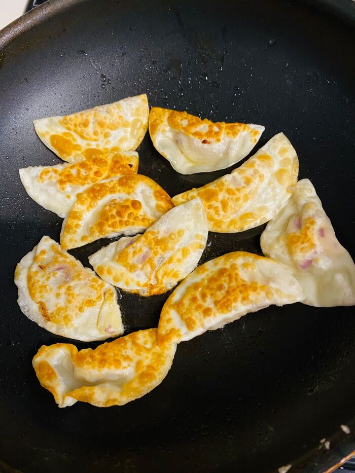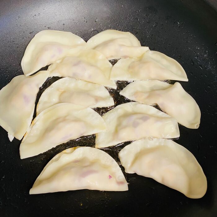 フライパンを熱し、少し油を多く入れて、強火でカリッと揚げ焼きにします。