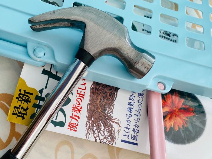 反対がも同じように厚い本を下に置いてトンカチで叩きます。