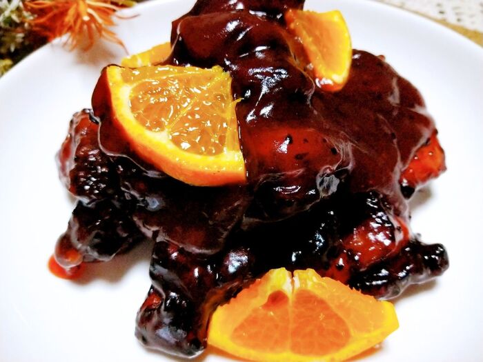 8.チキンを加えて全体にソースを絡め皿に盛りつける