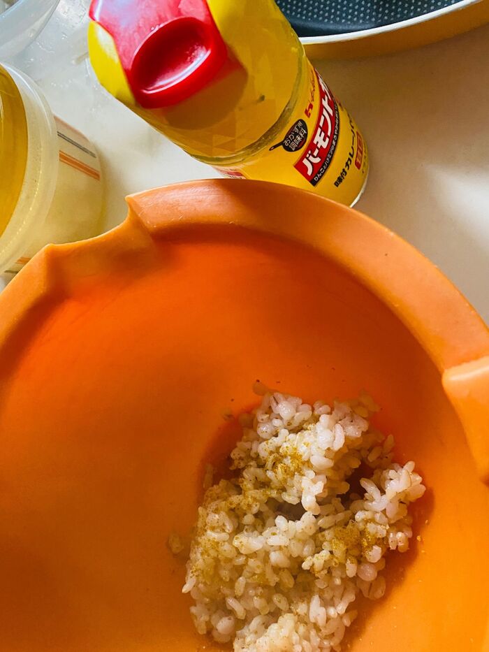 今回もテフロン加工のフライパンを使っているので、油は使いませんでした。もしそうでないものをお使いの時は油を各々で小さじ1ぐらいお使い下さい。