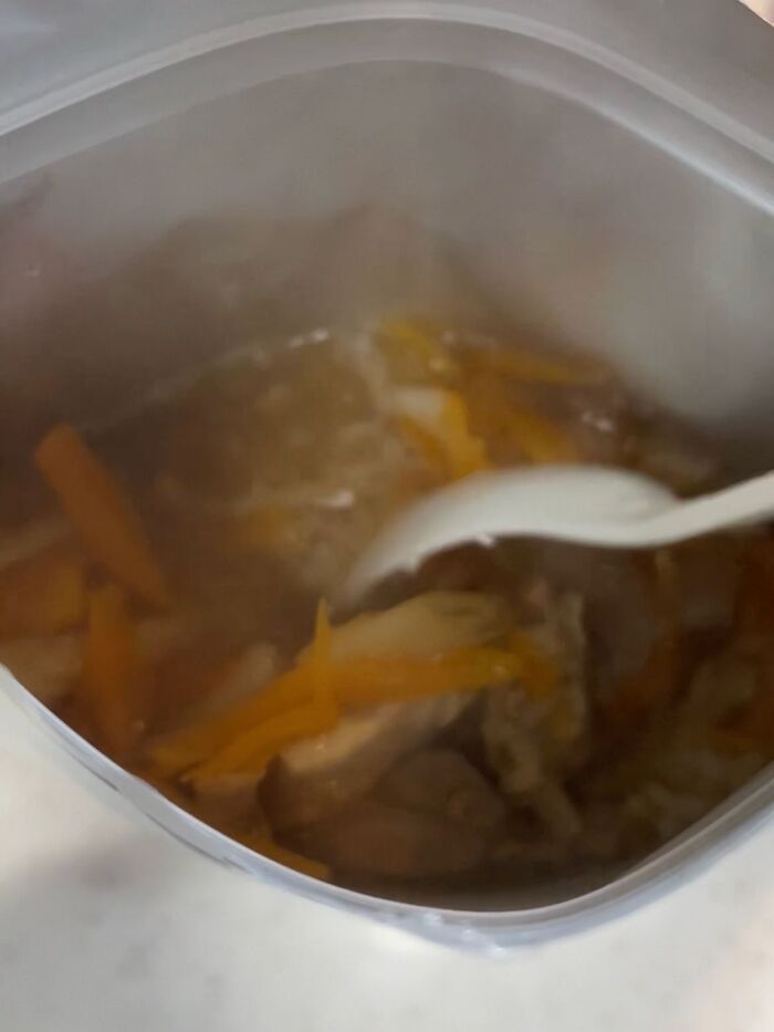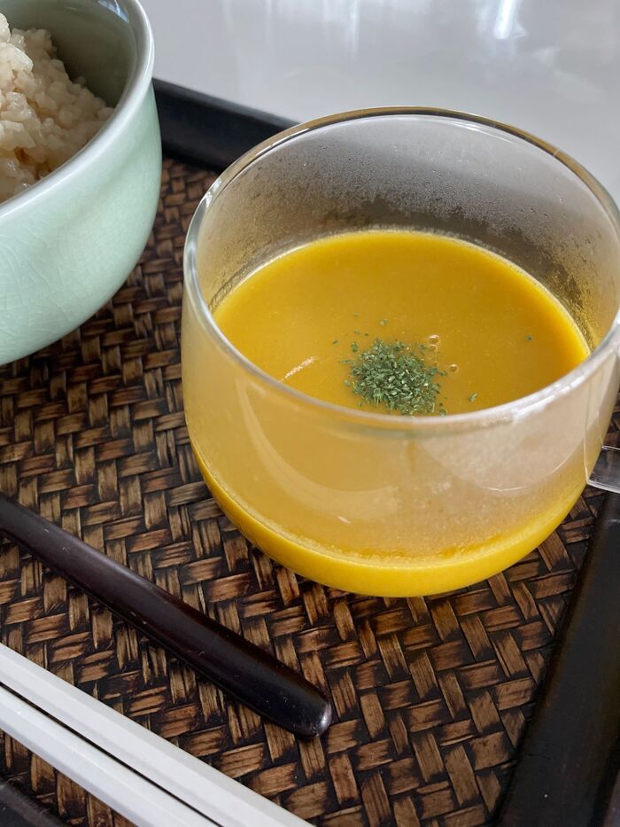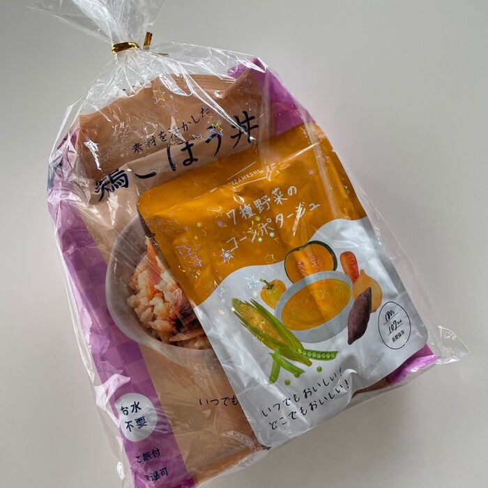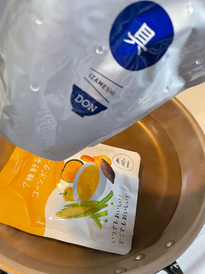 とうもろこし、さつまいも、にんじん、かぼちゃなど7種類の野菜を使用したコーンポタージュ。災害時に栄養バランスとれたスープが飲めるのは嬉しいです