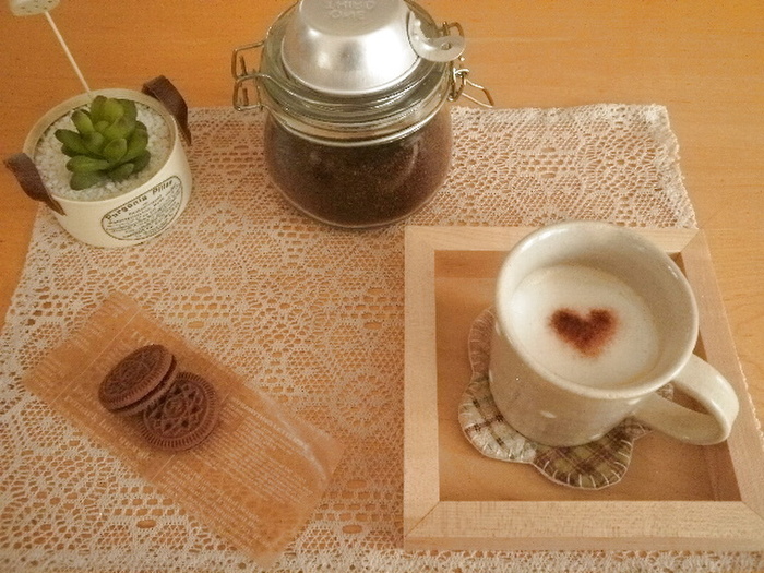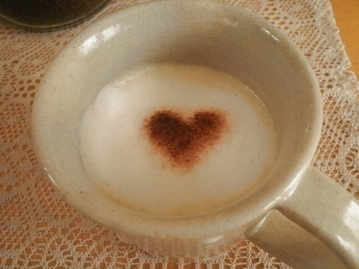可愛いハートの形が描かれた簡単カプチーノの出来上がりです。