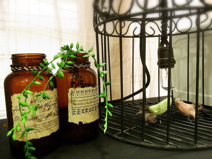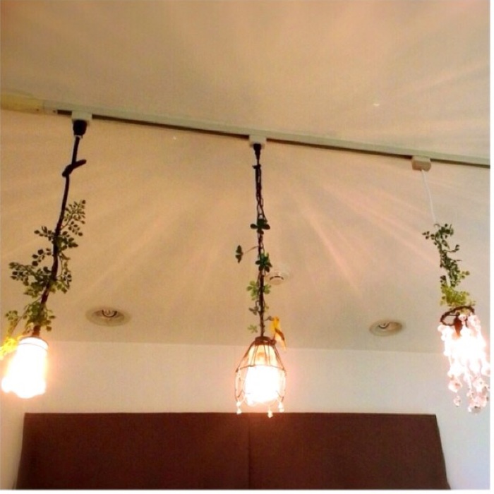 手作りランプにもフェイクグリーンをからめたら、さらに素敵度up〜