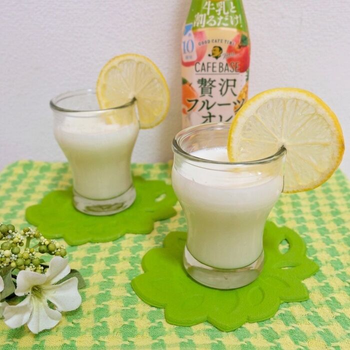 そのまま牛乳で割っても美味しそうですが、今回はレモンも絞ってラッシー風に。