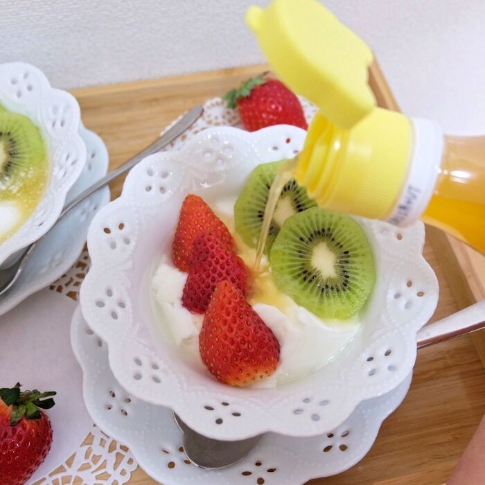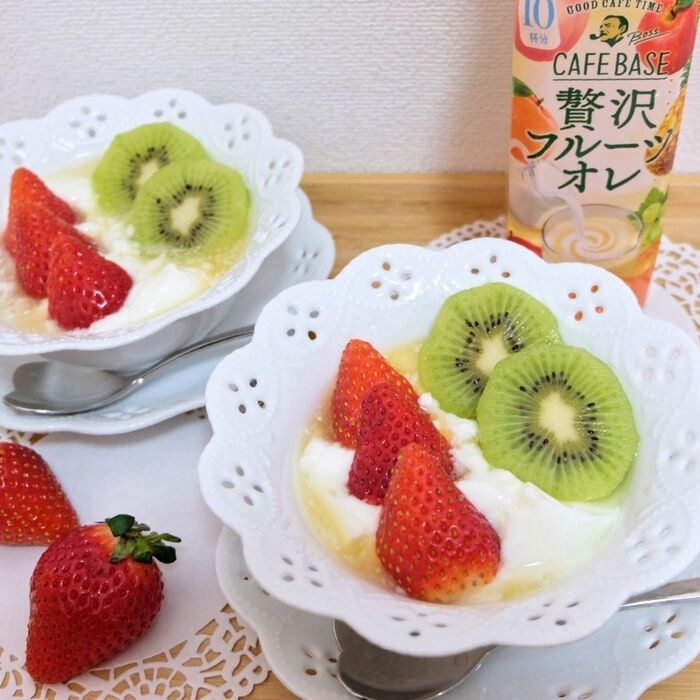 いちごとキウイもトッピングして、ちょっぴり豪華に。