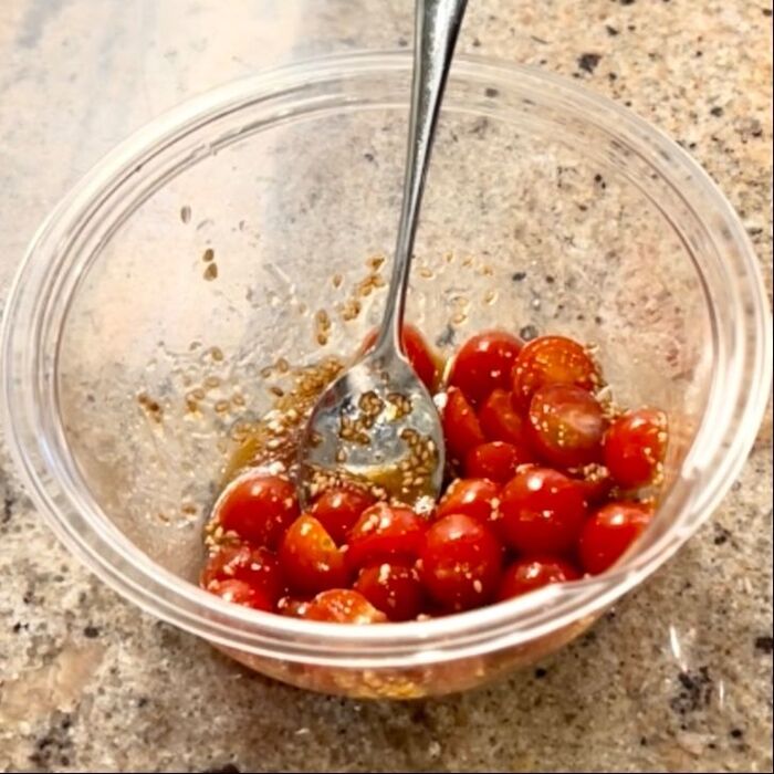 今回トマトがとても小さかったので普通のミニトマトなら7~8個でも。