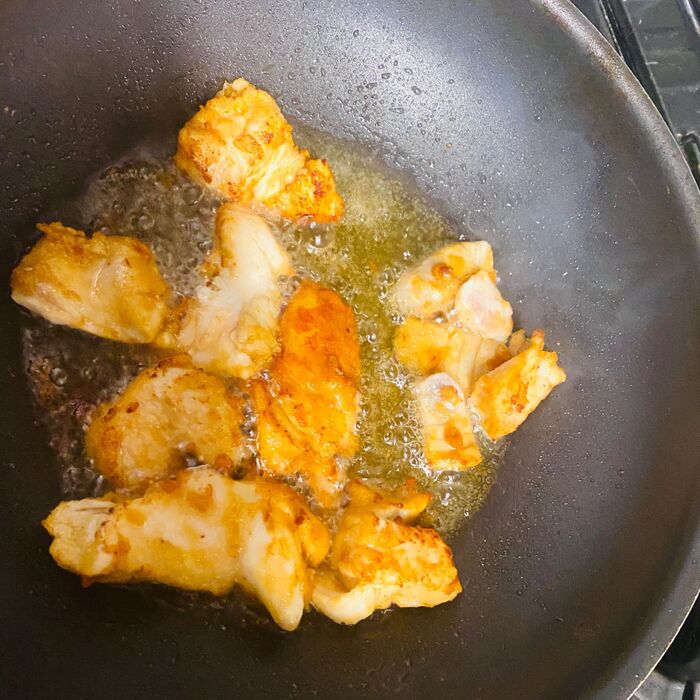 醤油、酒につけて、片栗粉をつけて揚げました。