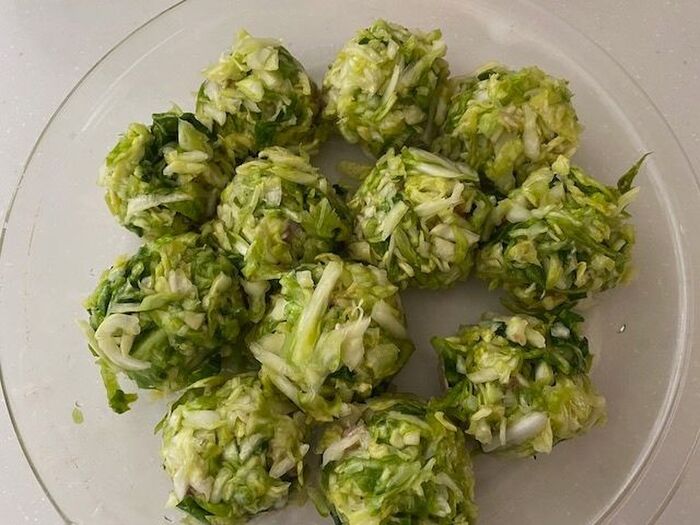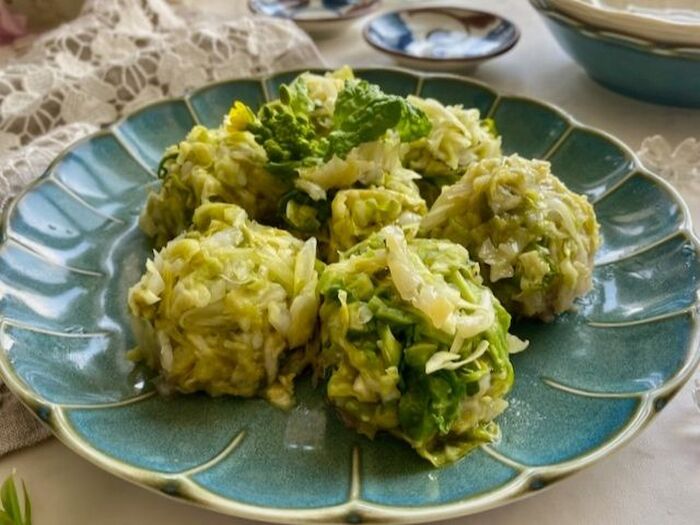 12等分に分けて丸め 春キャベツを周りにまぶして