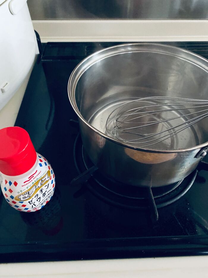 ④水にぜライスを2振入れて煮溶かします。火から下ろし放置します。