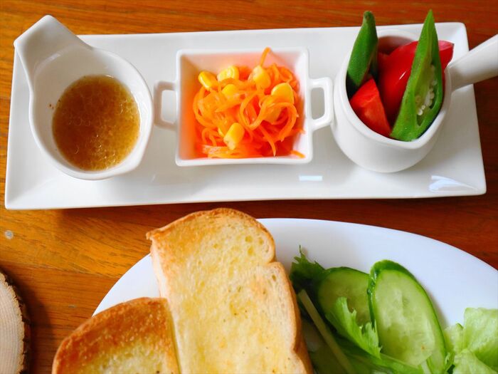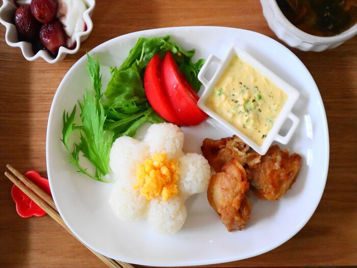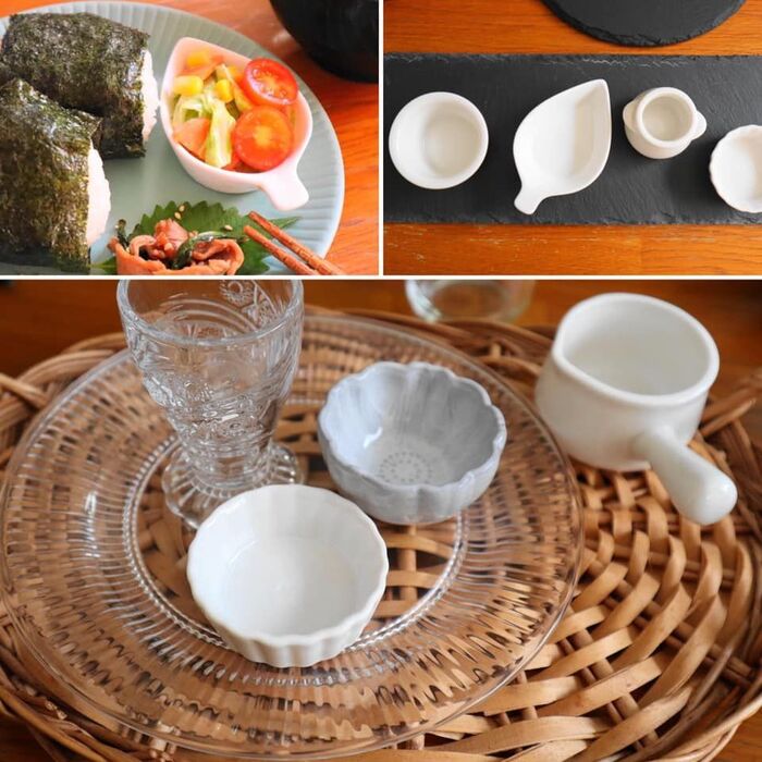 ちょっと凝ったご飯を作るのは大変でも、いつものメニューやちょっとずつ残ったおかずを、ちょこちょこっと盛りつけると種類が多く見えます。そんなときは小さな器が大活躍。タレやソースも白い器に入れて添えると、グッとカフェっぽくなっておうちカフェランチの完成♪