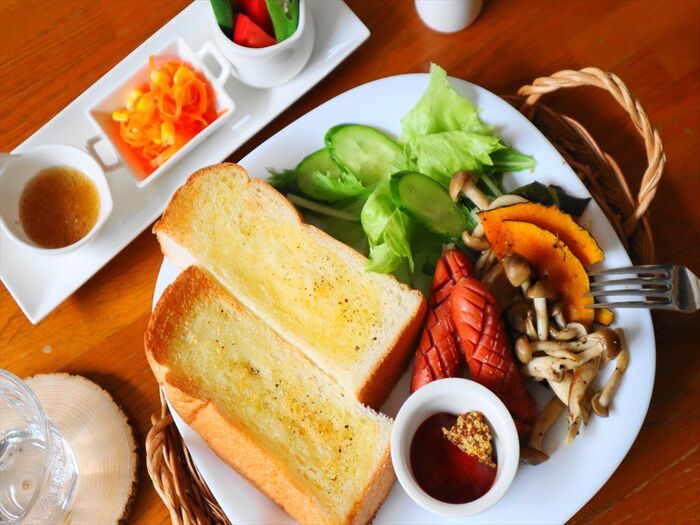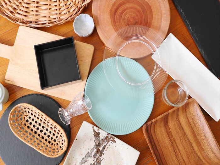 バスケットやカッティングボード、ウッディなコースターや天然素材のランチョンマットなどを組み合わせると更にカフェ風演出UP!