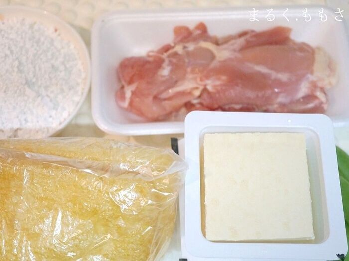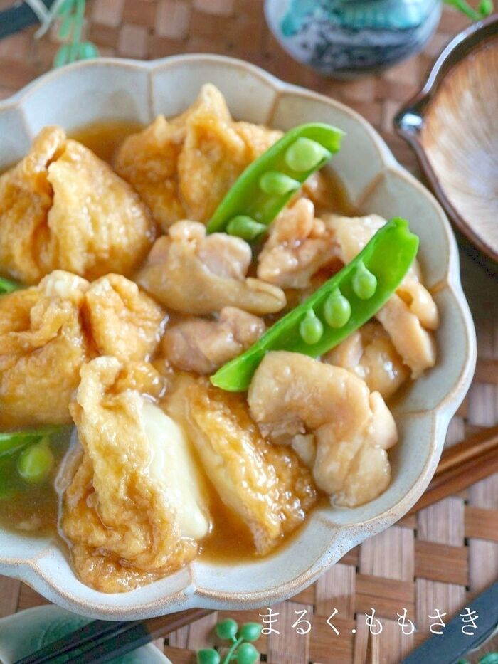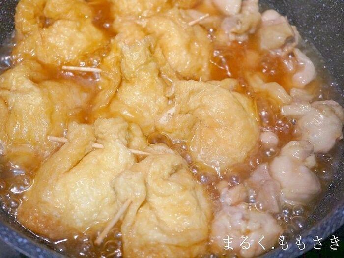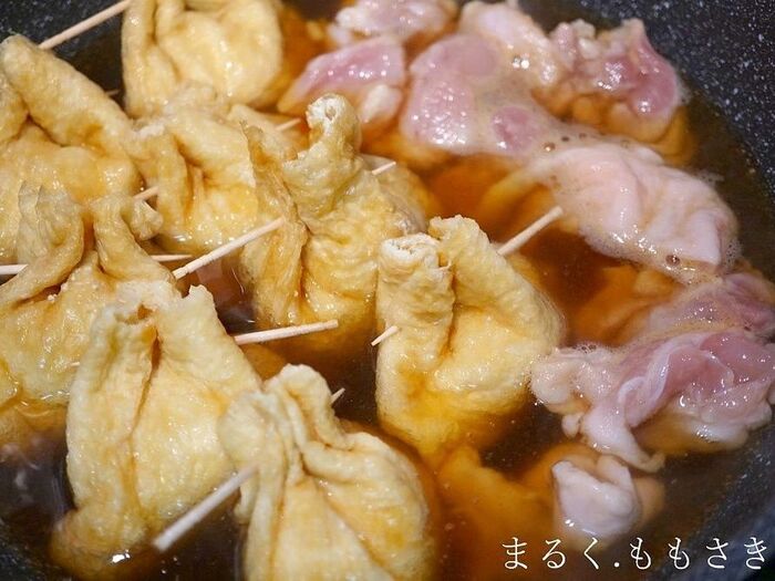 ④鍋に☆を入れ沸騰したら火を弱め、油揚げと鶏肉を入れ