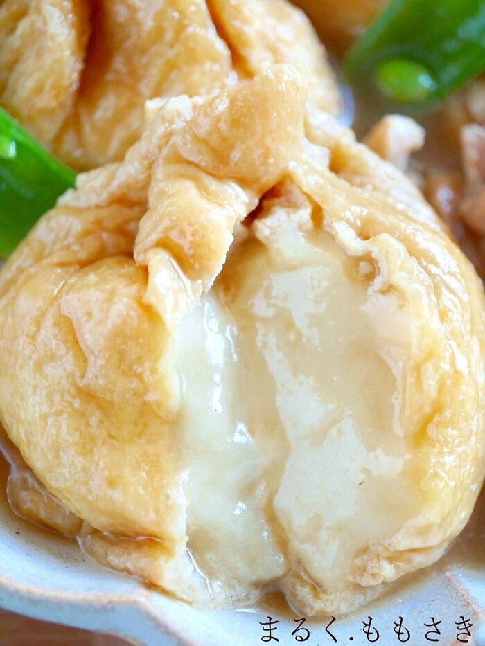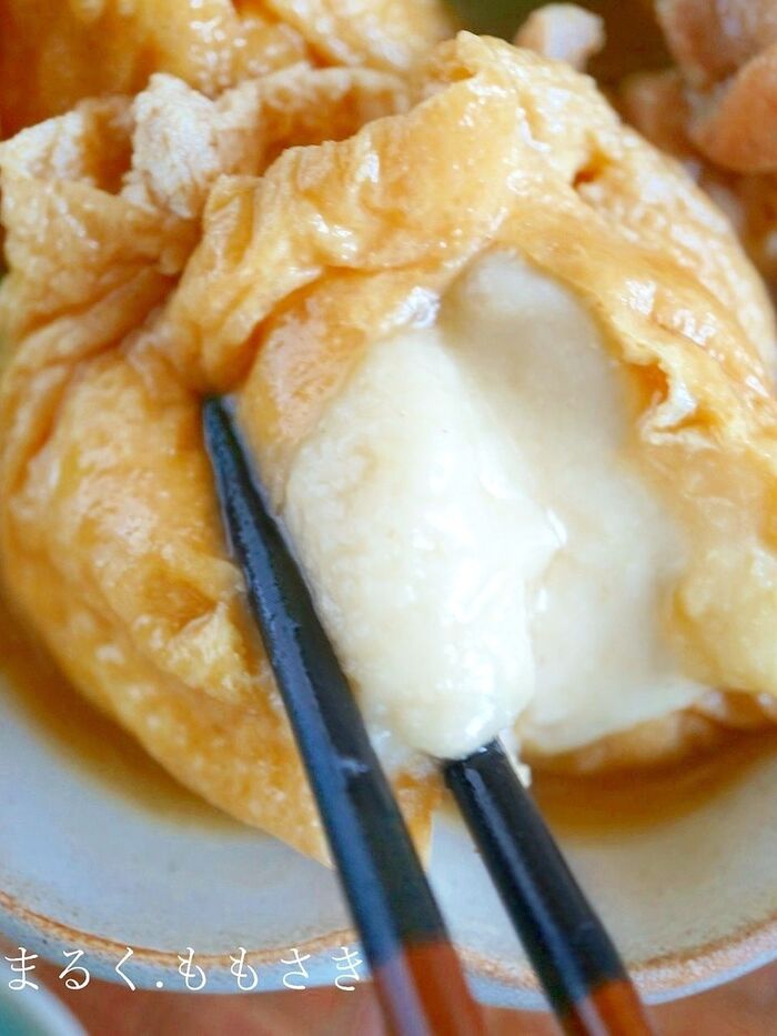 甘辛味のお揚げさんに味が染みたモチモチの豆腐もちがとろけます