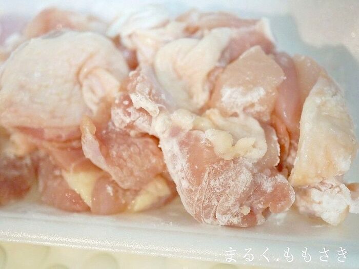 ③鶏もも肉は1口サイズにカットして塩を振り混ぜ、