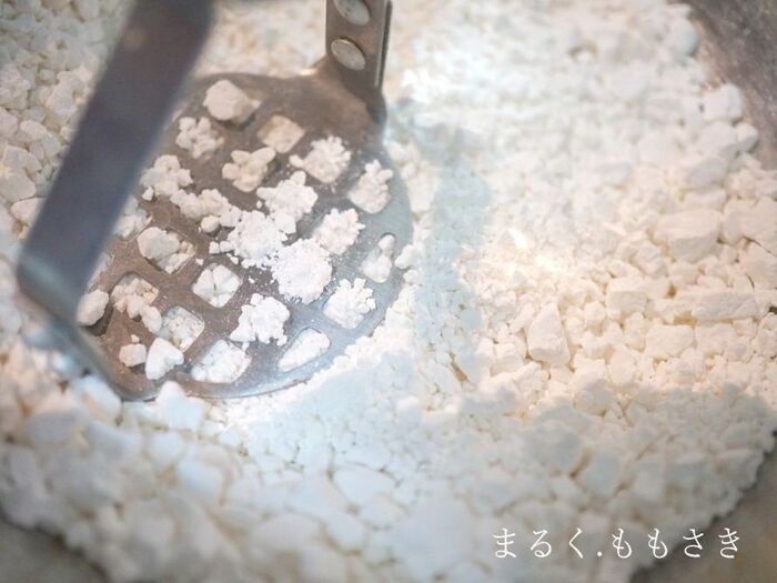 ●白玉粉はボウルに入れ潰す。(100均のマッシャーで潰しました)