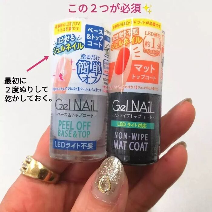 最初にアップした『SH ジェルネイル(ライト不要)ベース&トップコート』を使って