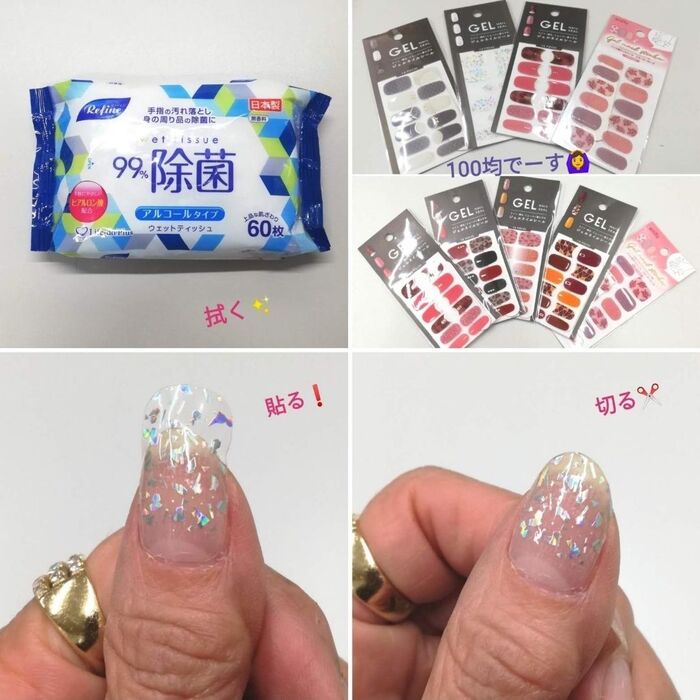 シールを貼ってノンワイプトップコートをぬって硬化するだけです。
