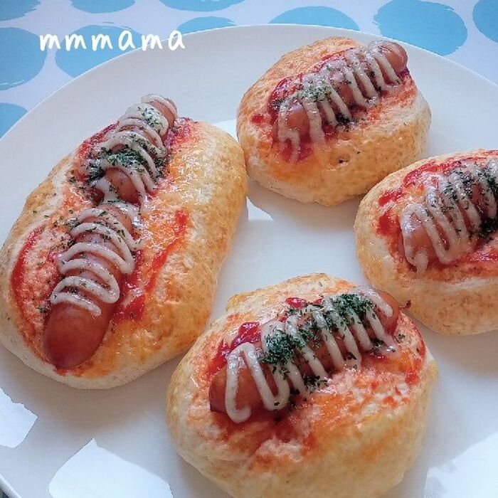 ホットケーキミックスと水だけで、発酵いらずで簡単に出来てしまうパン生地なので時短に!