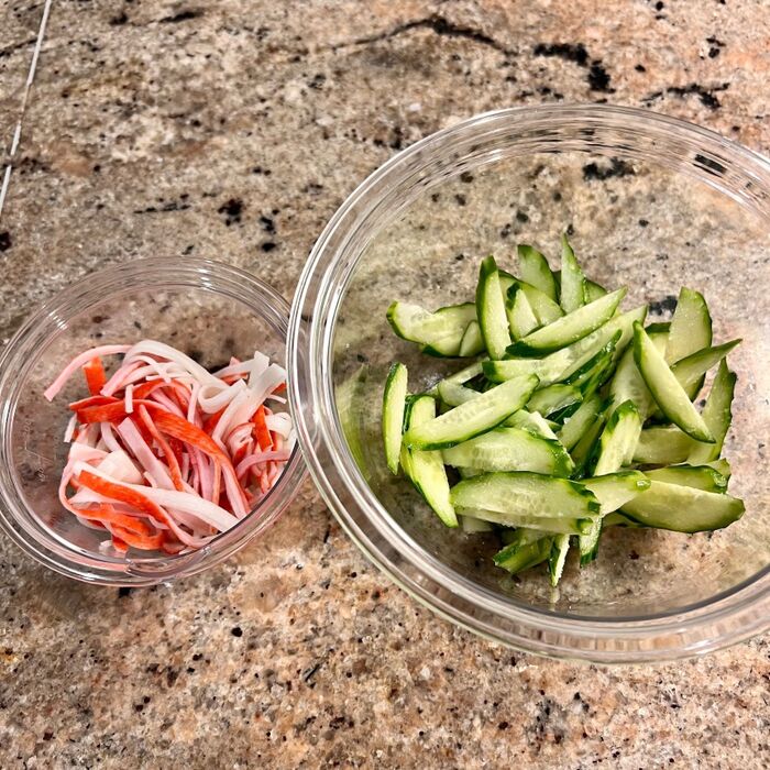 その間にカニカマをほぐす。