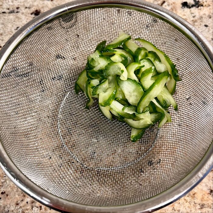 きゅうりに塩をふってから時間が経ちすぎると塩辛くなるので注意♪