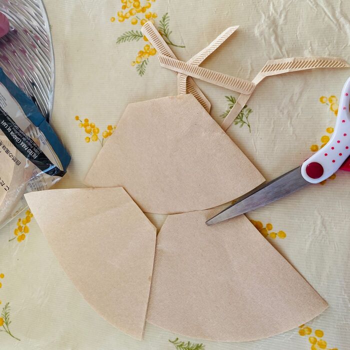 これを2本軸にして、包むように残りのコーヒーフィルターで、ハートの形になるように丸めます。