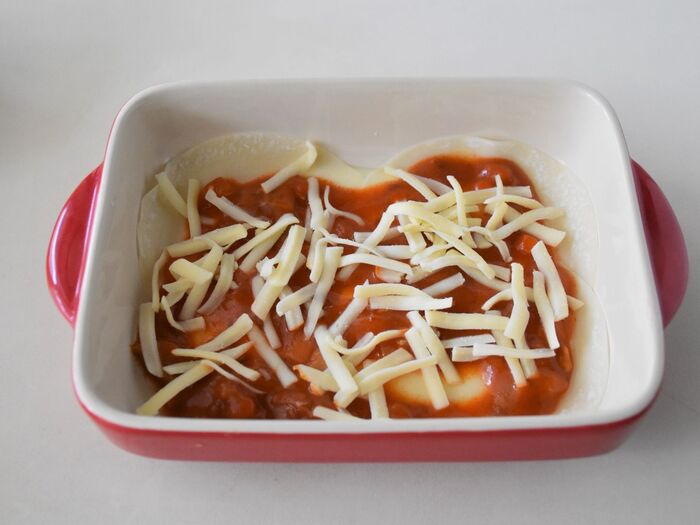 ミートソースは市販のものを使用しましたが、もちろん手作りでも◎残ったミートソースは冷凍保存できます。