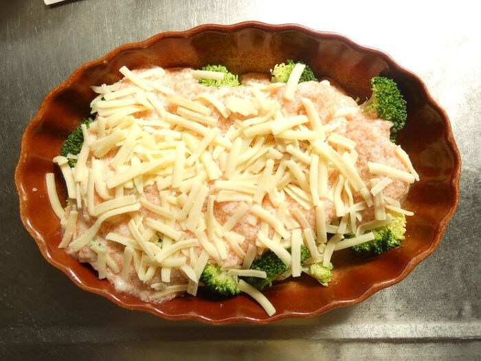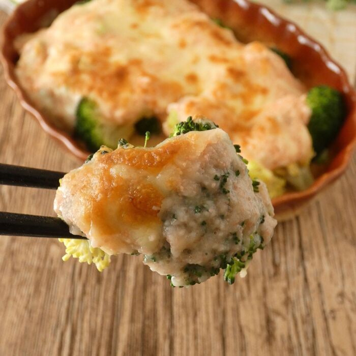 ブロッコリーにとろろ芋をかけ、ピザ用チーズを乗せてトースターで焼きます。チーズが溶けてきつね色になったら完成♪