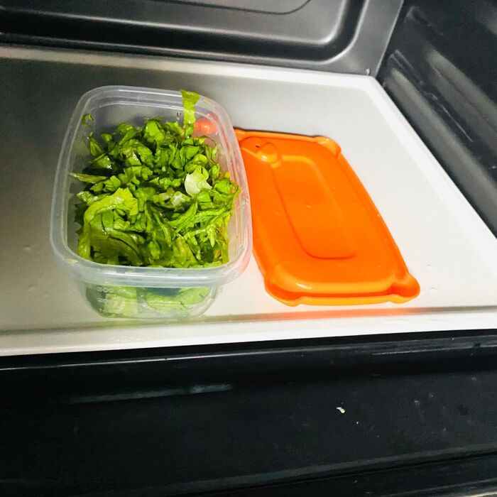 ザルに上げ、軽く水気を切ります。耐熱容器に入れて蓋をして、600Wで2分レンチンします。
