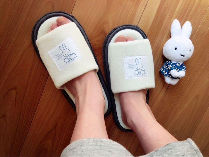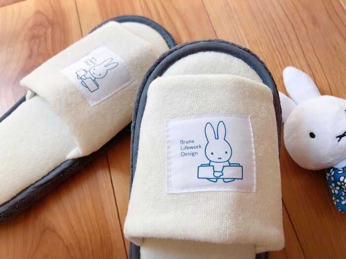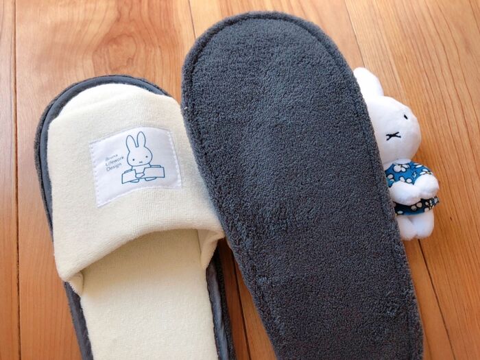 肌触りの良いサラっとしたパイル生地にグレーのパイピング♡ミッフィーのタグが可愛い〜♡サイズ約23〜24.5㎝♡
