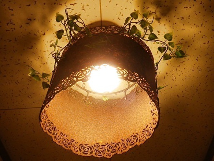 ボンドでくっつけ、筒状にし、筒の端の透かし模様を