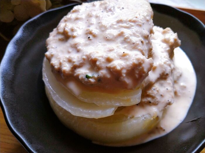 4.皿に玉ねぎを盛りつけてAをかけて完成