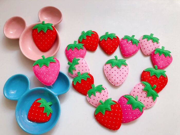 赤とピンクの3色でサイズ違いがありました♡大きなイチゴは約5㎝で7個、小さいほうは約4㎝で10個入りです♡