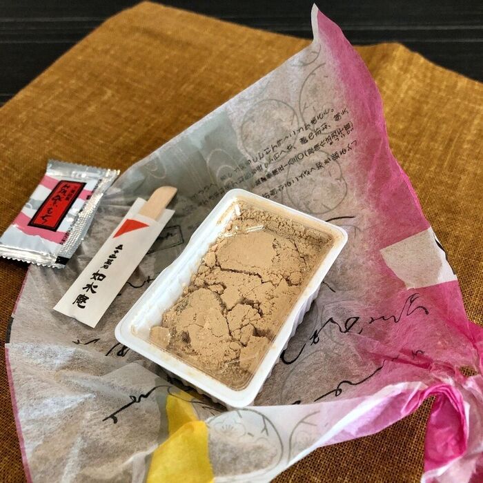 お皿の上に置いて食しましたが、きな粉も黒蜜も余ることもなく、こぼれることなく完食できました。