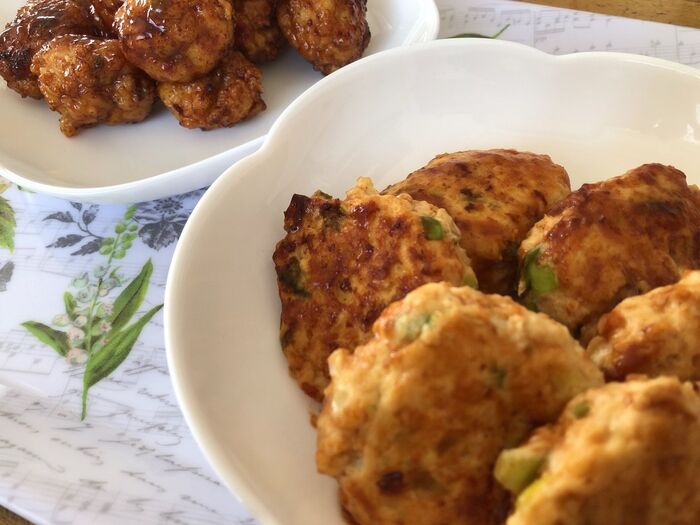 今回はお弁当用に、鶏ひき肉とネギと合わせてつくねバーグと肉団子にしてみました♬