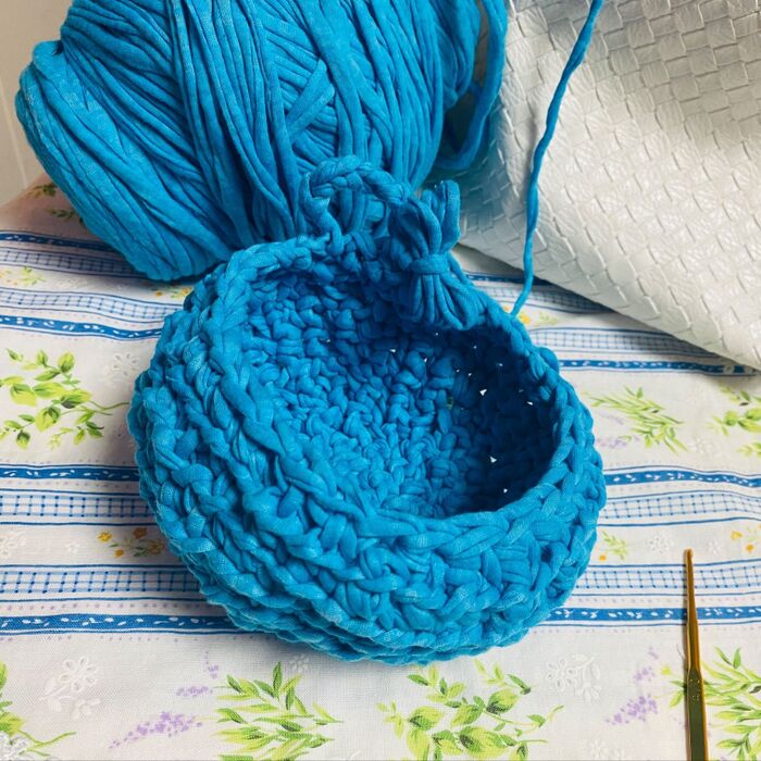 かぎ針編みで、中長編みを13段目まで編みます。(底の部分です)