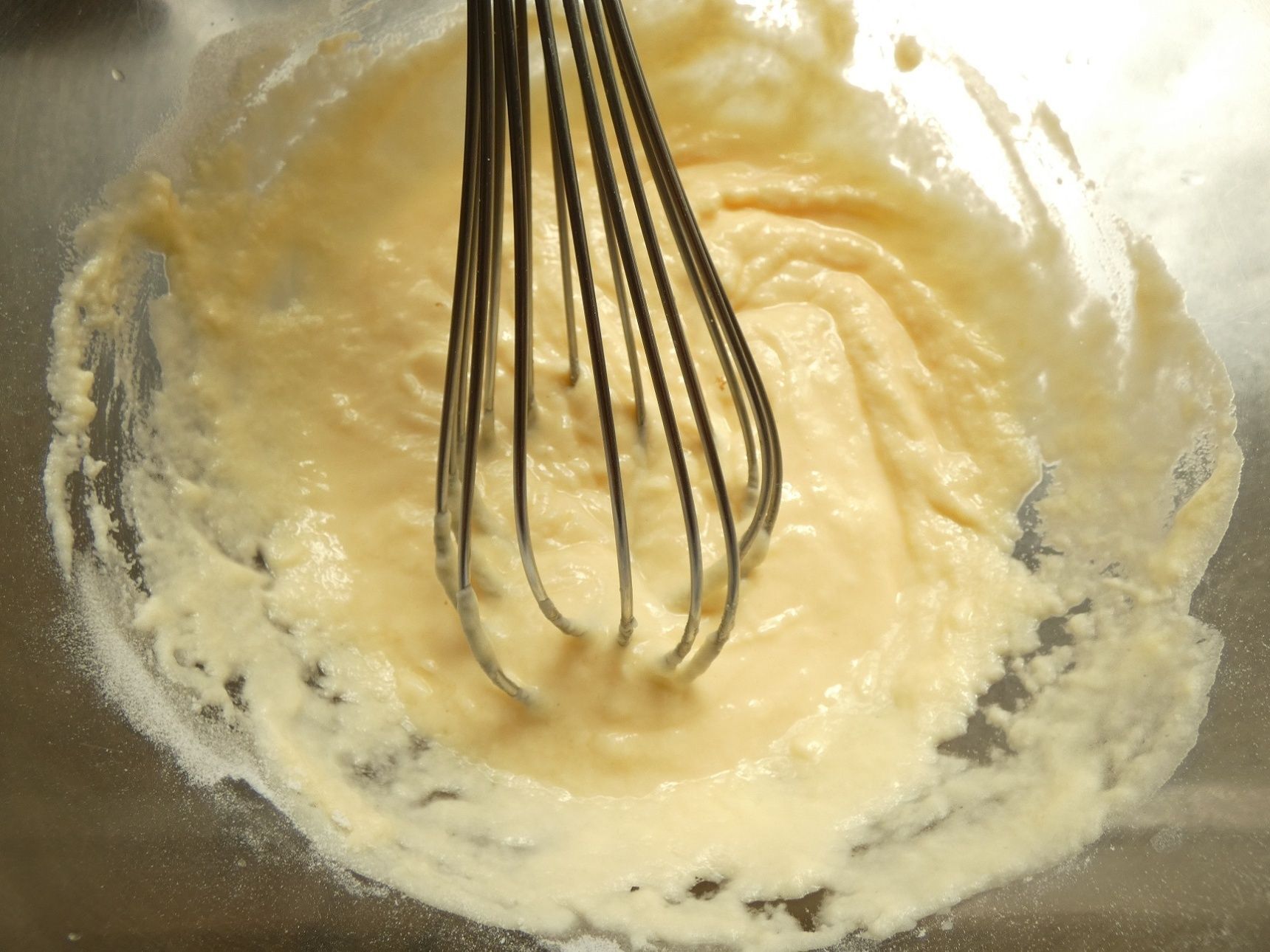 米粉、水、卵、鶏ガラスープの素を混ぜ合わせます。