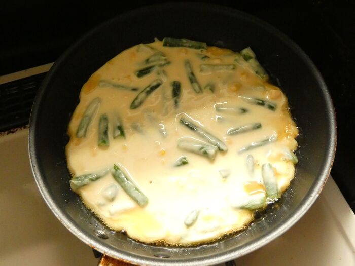 いんげんは2cm位の長さに切り、コーンはしっかり水切りします。
