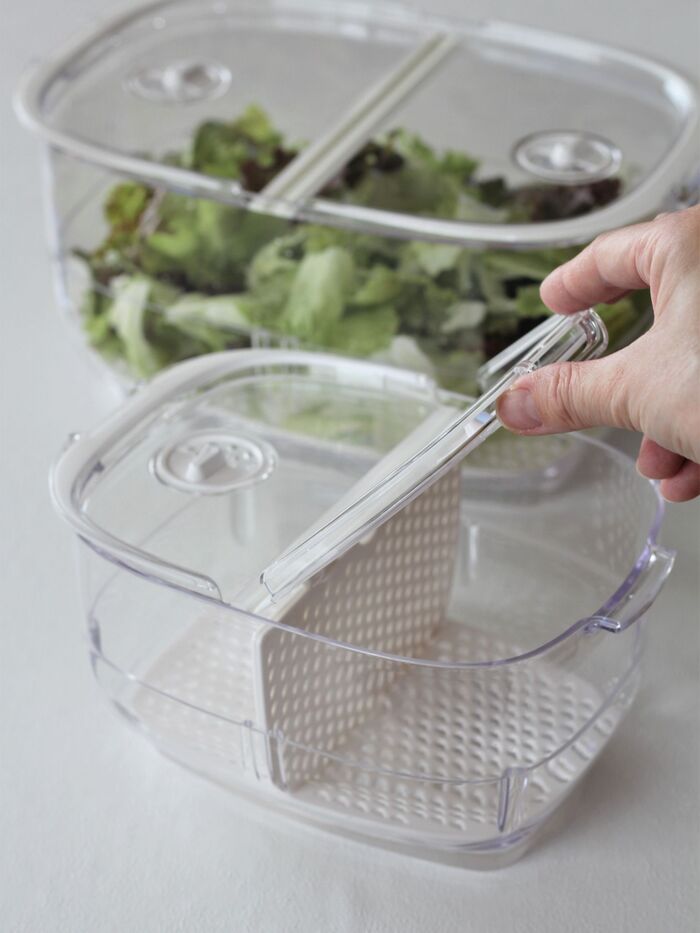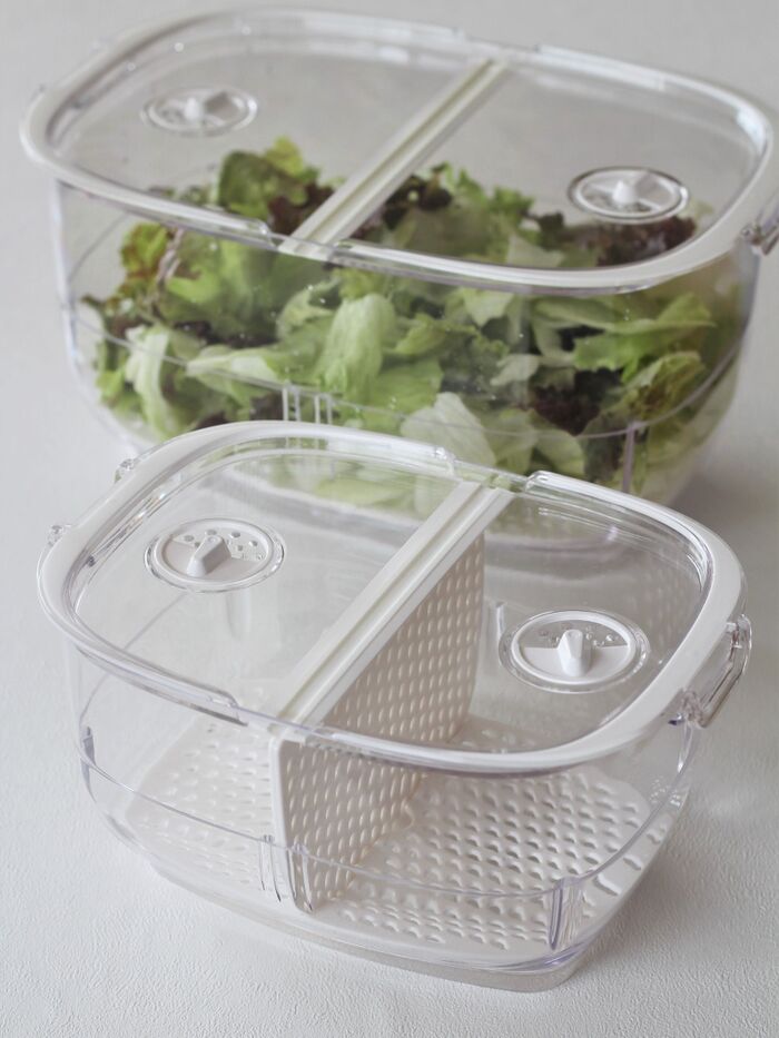 (奥はLサイズ。サラダスピナーにかけたたっぷりのレタスを保存しています。)