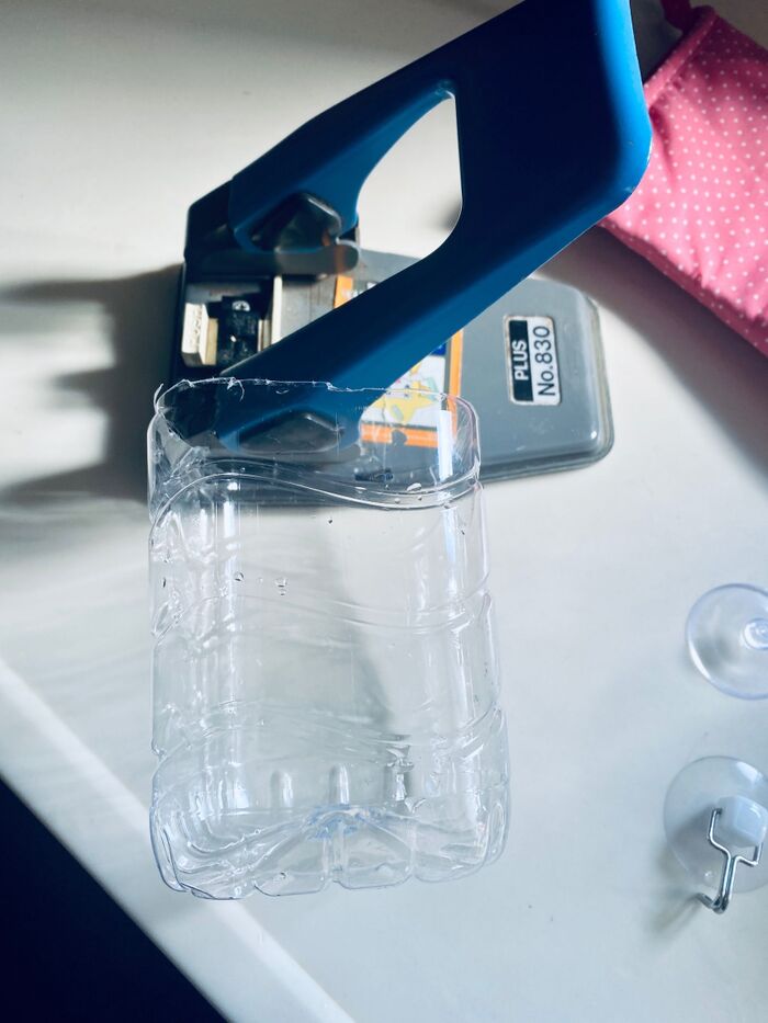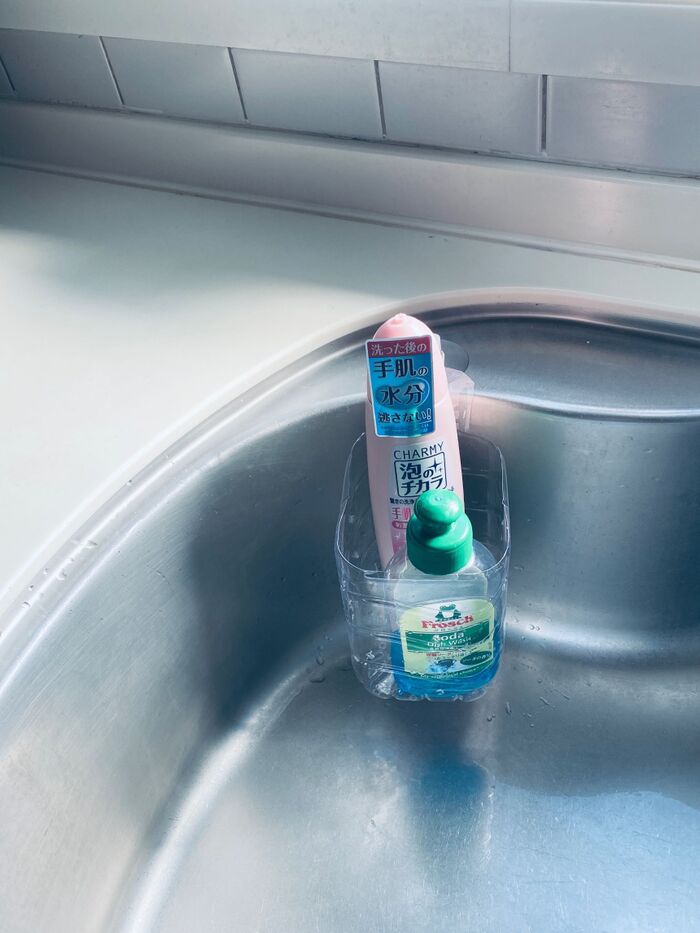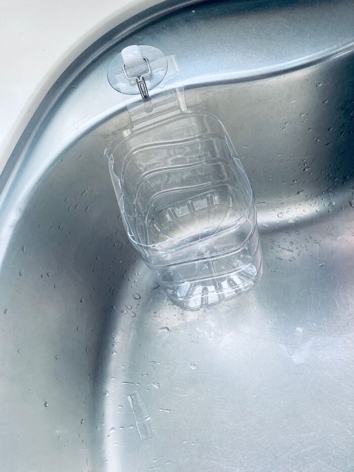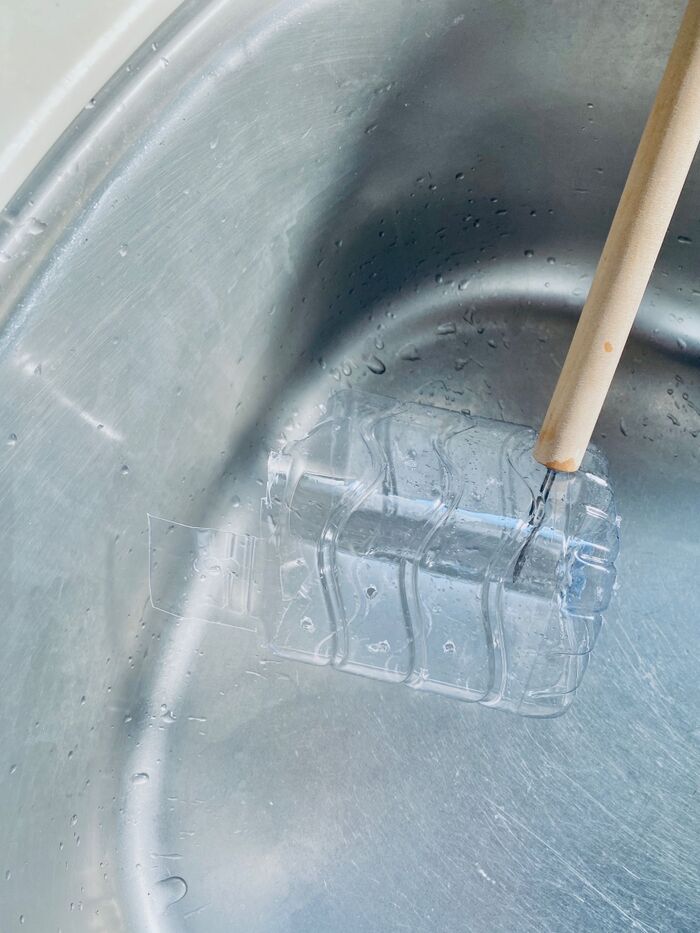 2Lのペットボトルをシンクの使いやすい大きさに、ハサミなどでカットします。