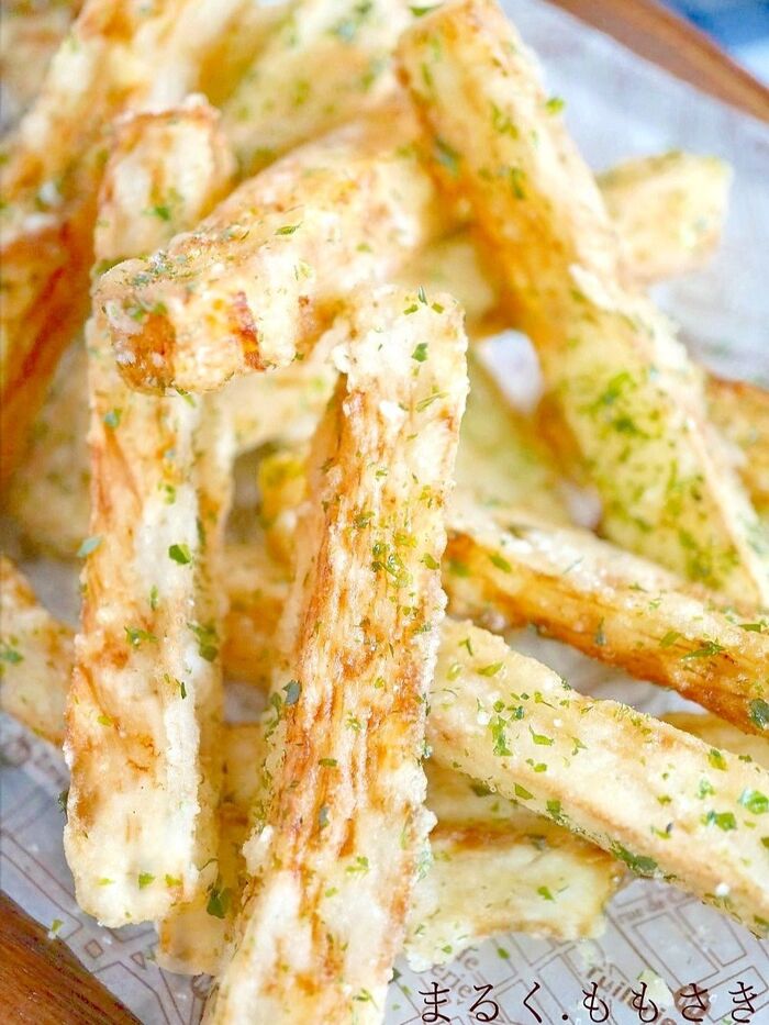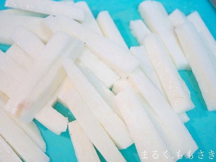 ①長芋は皮を剥き、1cm程の拍子切りにする。
