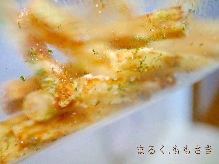 ②ビニール袋に片栗粉を入れ、1を入れ振りながら全体に付ける。