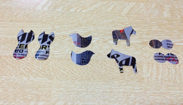 お好きな形に型紙を作ったら、缶に当ててペンでなぞりハサミで切り取ります。