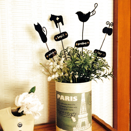 空き缶で沢山作れるので家の中でも外でもちょこんと刺して楽しみたいと思います♪