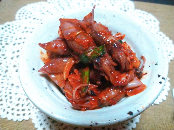 3.ホタルイカを洗わずにヤンニョムと合わせて、手でよく揉み込んで完成
