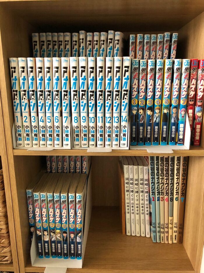 ブックスタンドは、上下で漫画14冊収納できるので、計42冊!