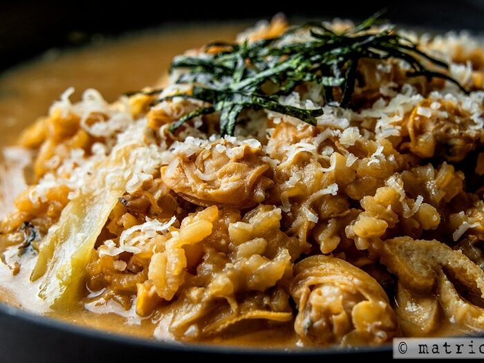 ゴルゴンゾーラを使うことで、深川めしとリゾットがばっちり融合♡